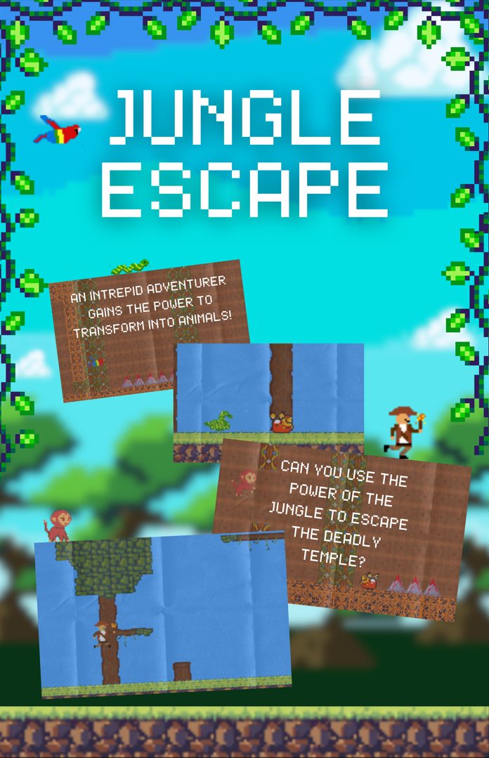 Jungle Escape is a 2D platformer where players are able to shape-shift into 3 different animals forms in order to access their various traits. This was a project split between a group of 4, including me, and was taken from conceptualization to implementation over roughly 2 months.