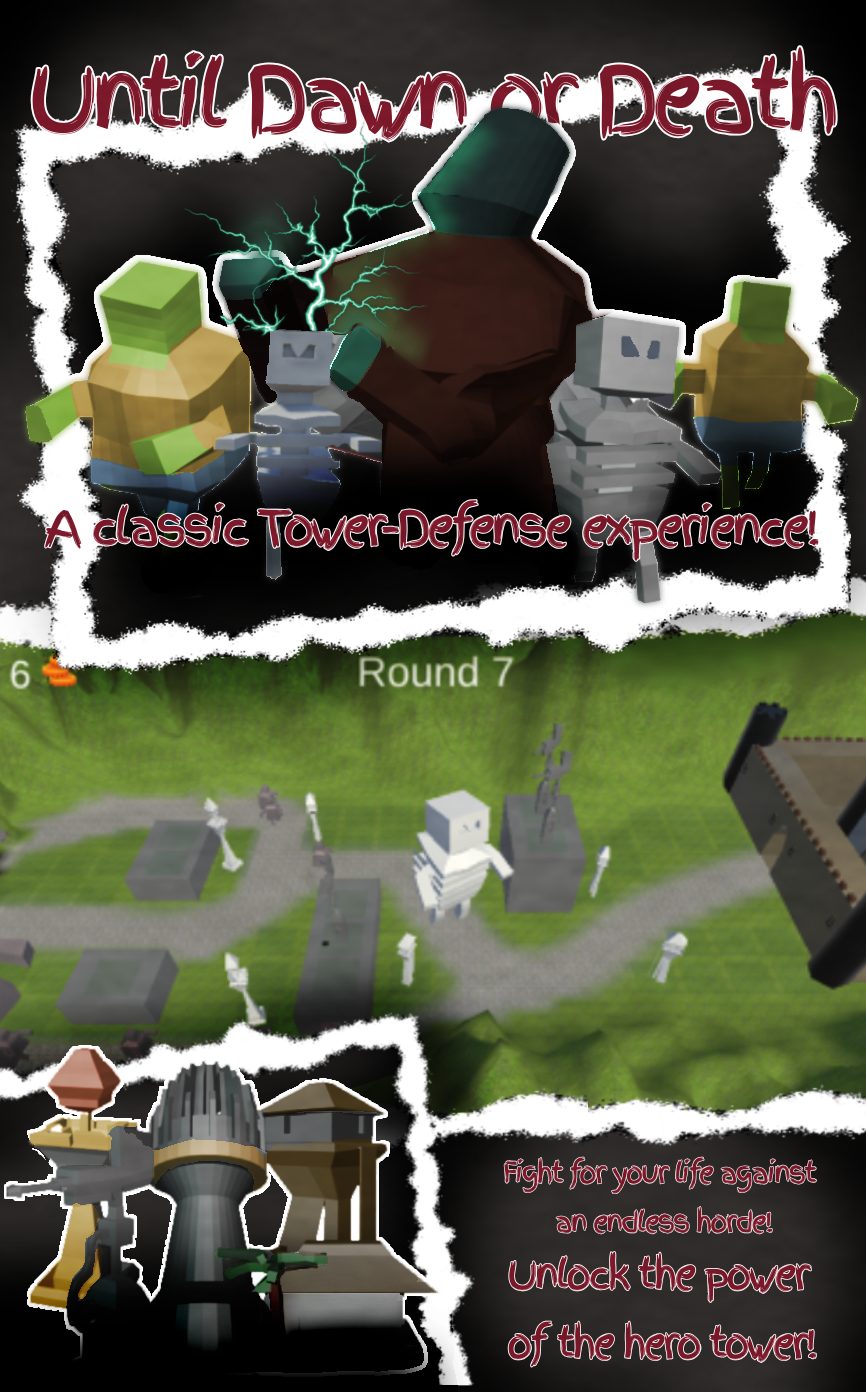 Until Death or Dawn is a 3D tower defense game made in the span of 2.5 months. Players are able to hop into the hero tower, and enter a first person shooter mode